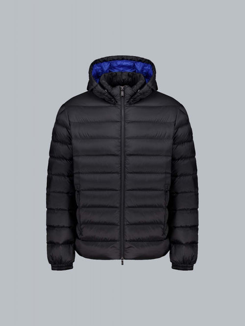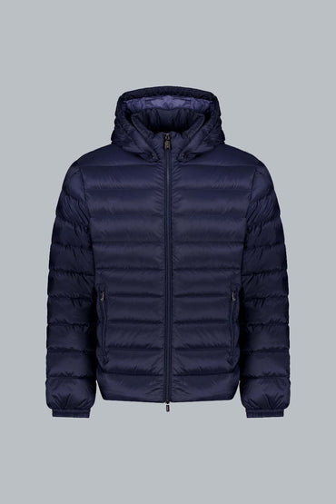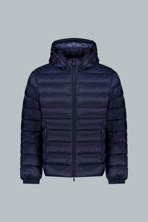 STEVENSON 2.0 – Piumino invernale blu con cappuccio, realizzato in tessuto poly taslan dall’effetto opaco ed imbottito in vera piuma 90/10 in grado di garantire performance...